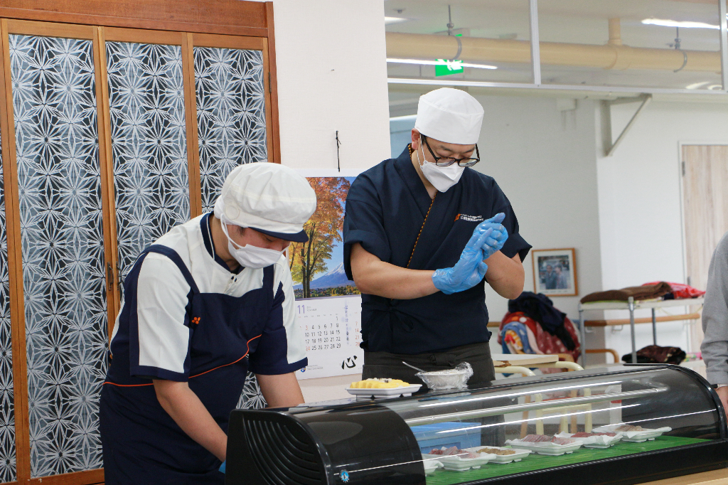 利用者様はお寿司が好きな方が多く、出来立ての寿司を味わえる貴重な体験となりました。